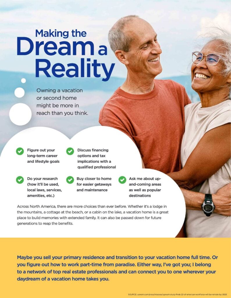 In this month’s flyer, you’ll find some ideas on how to make that dream a reality. I also share some of the other benefits of owning a second home.