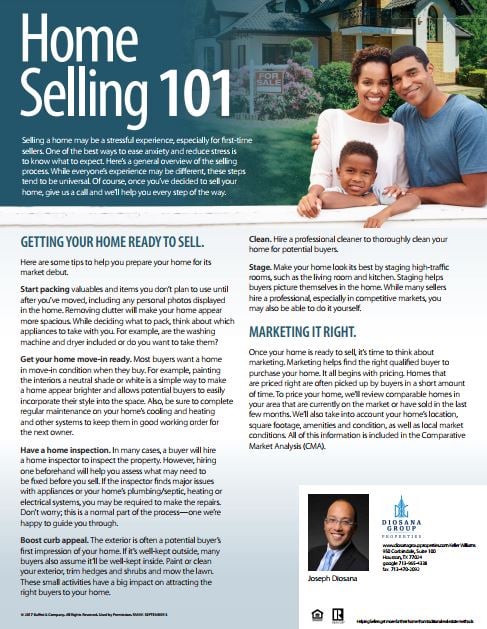 This month, the information I’m sending provides an outline of what to expect during the selling process. From getting your home ready for its market debut to handling offers and the closing process, this piece helps you understand what may happen and offers tips to get your home ready. While the specifics of your sale may be different, the steps listed consistently occur in the majority of transactions.