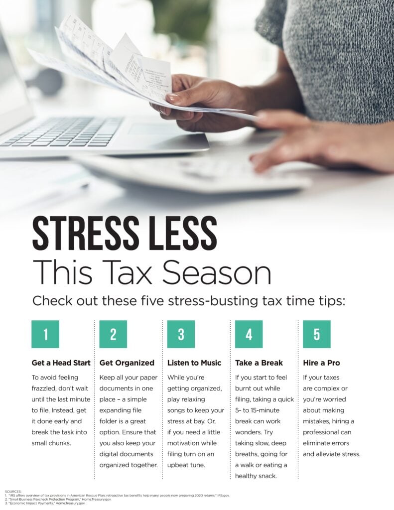 This year, as in years past, there are a few changes to the tax policy that you’ll want to be aware of when it’s time to file your tax return. In this month’s piece, you’ll find a brief overview of the most important updates and changes, as well as some information on COVID-19 relief and its effect on your taxes. I’ve also shared a few tips on how to stress less when it comes to filing your taxes.