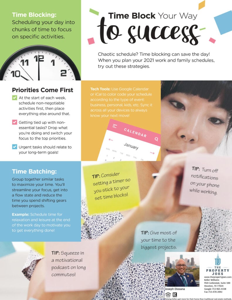 To help you get ahead in 2021, I’m sharing a few strategies to boost your productivity in the new year. You’ll get tips on how to optimize your downtime, keep your goals front-and-center, make time for self-care and more. There is also some valuable information on the power of time blocking, and why that practice will help you squeeze more out of your daily schedule.