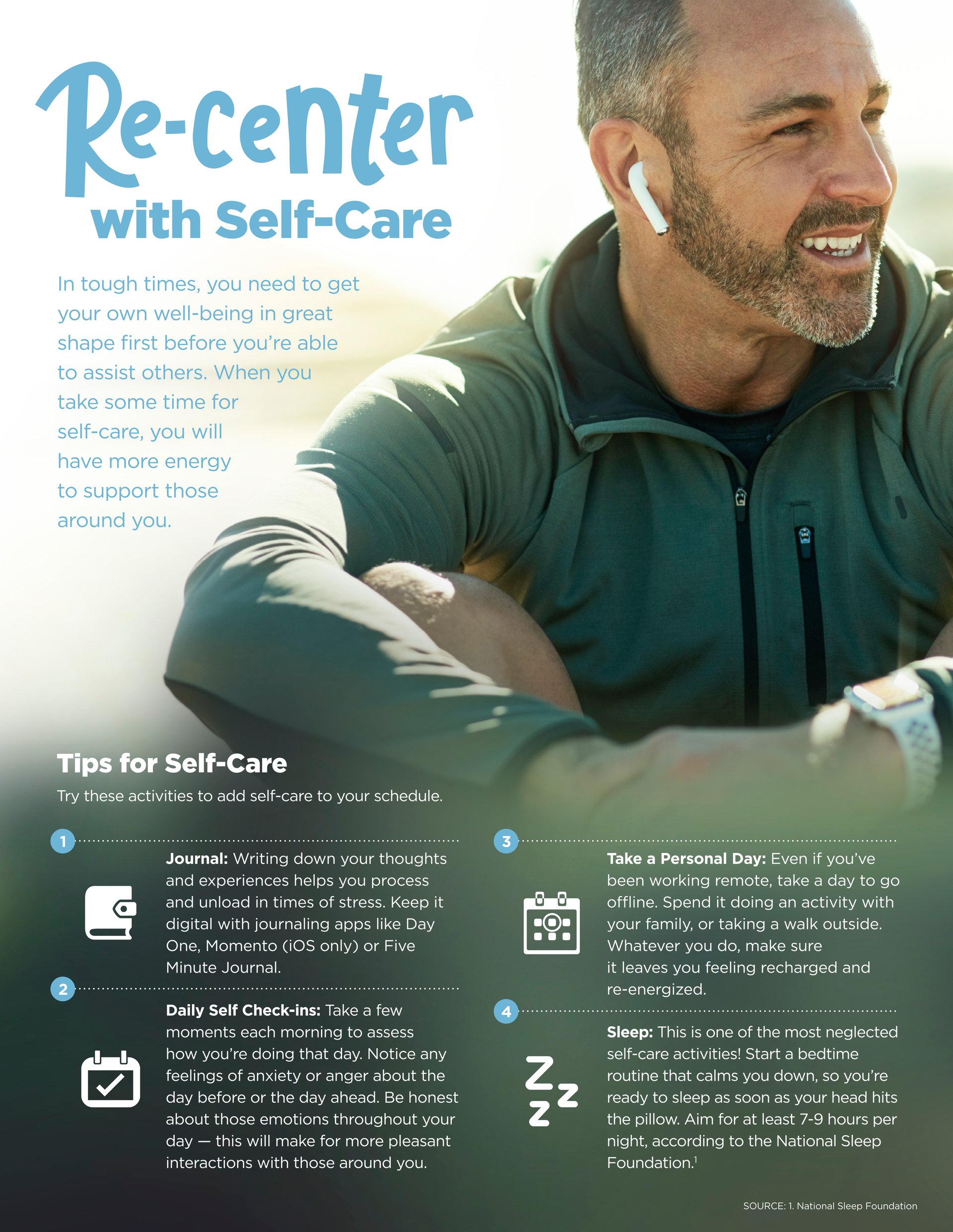 As you continue to navigate your new normal, I want to share some tips for focusing on your own well-being. The information I’m sending this month includes ways to reset your goals and to reboot your routine so that you feel recharged and ready to support your family, friends and community. You’ll also learn a few helpful ways to practice self-care, so that your emotional wellness remains in great shape.