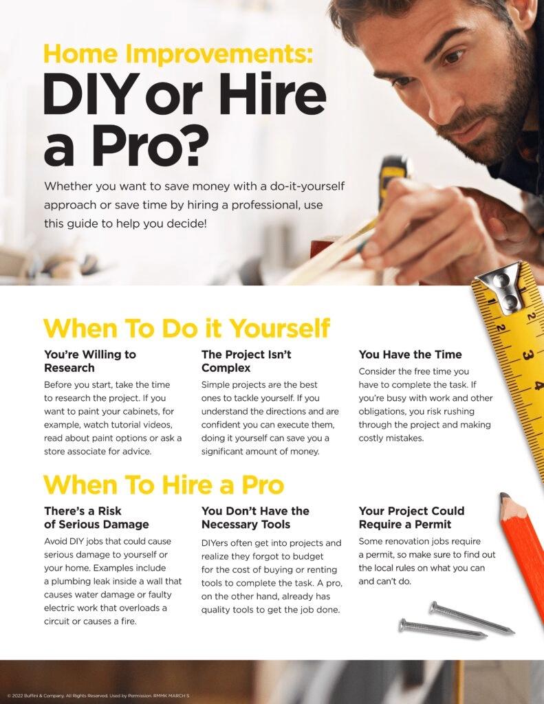 Spring is almost here, which is an ideal time to give your home a refresh. As you consider a home renovation project, you may wonder whether you should tackle it yourself or let a professional handle the work.