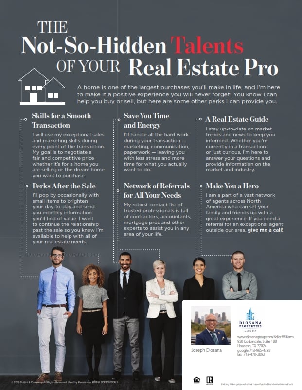 To show you what I mean, I want to share a few of my “not-so-hidden talents” with you this month. These are some skills, benefits and knowledge I provide in addition to assisting you with buying or selling your home. You’ll also find a few numbers speaking to the high-quality work real estate agents provide for their clients. It is my hope you grasp a completely new perspective on what a great real estate professional can do for you. I will always strive to provide you with an unparalleled level of service with anything you may need, regardless of whether it’s real estate related or not. Need a referral for a great contractor? Have a question about these topics? Give me a call — I would be honored to serve you.