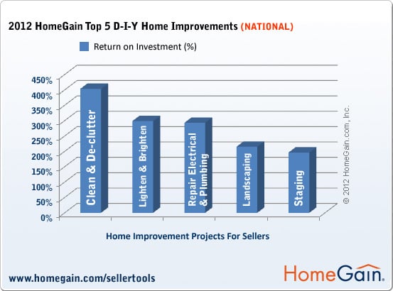 That’s right, better than the stock market. According to HomeGain’s The Home Maximizer survey of home improvements, home staging gave home owners a tremendous return on their investment.